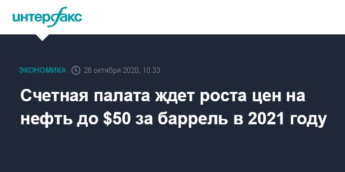 По прогнозу Счетной палаты, цена нефти вырастет с $42 за баррель в 2020 году до $50 за баррель в 2021 году.