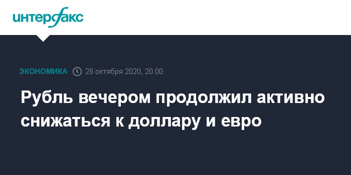 Как отмечают эксперты "Интерфакс-ЦЭА", рубль продолжает активно дешеветь к доллару и евро на вечерних торгах в связи с усилившимся бегством инвесторов из рисковых активов и обвалившейся нефтью. Глобальные инвесторы опасаются усиления негативного влияния второй волны пандемии коронавируса на мировую экономику.