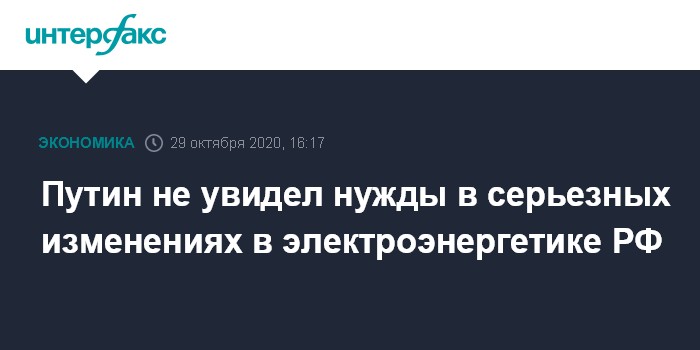 Путин не увидел нужды в серьезных изменениях в электроэнергетике РФ