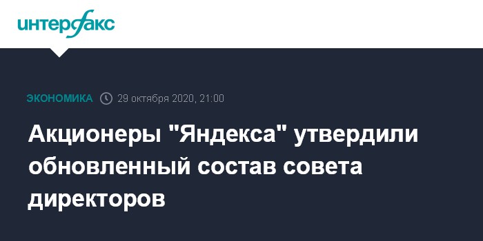 Москва. 29 октября. INTERFAX.RU - Акционеры "Яндекса" на годовом собрании утвердили обновленный состав совета директоров, говорится в сообщении компании.
