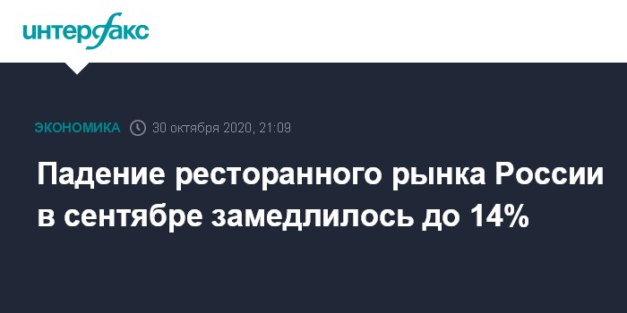 Падение ресторанного рынка России в сентябре замедлилось до 14%
