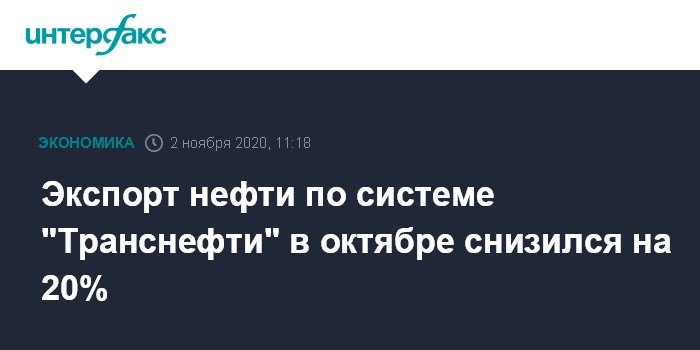 Экспорт нефти по системе "Транснефти" в октябре снизился на 20%