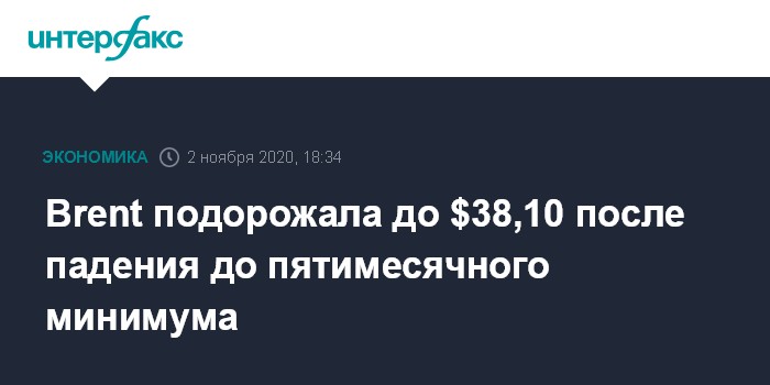 Brent подорожала до $38,10 после падения до пятимесячного минимума