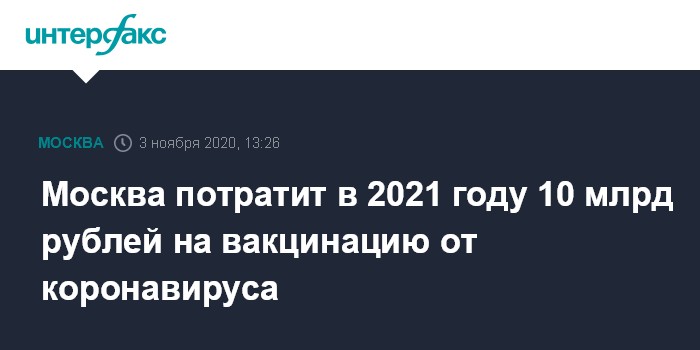 Москва потратит в 2021 году 10 млрд рублей на вакцинацию от коронавируса