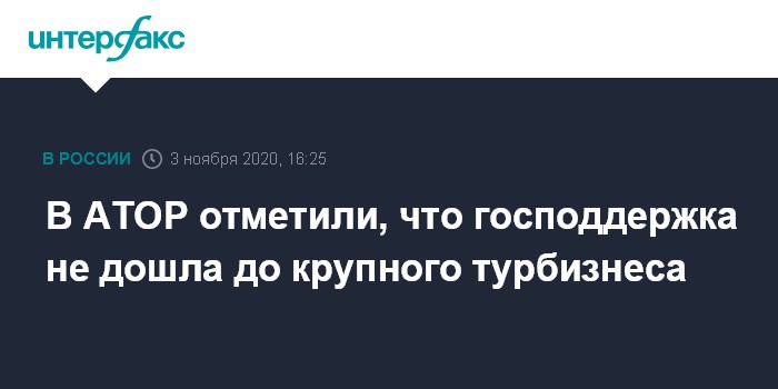 В АТОР отметили, что господдержка не дошла до крупного турбизнеса