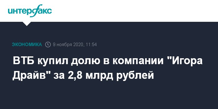 ВТБ купил долю в компании "Игора Драйв" за 2,8 млрд рублей