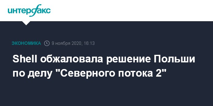 Москва. 9 ноября. INTERFAX.RU - Royal Dutch Shell обжаловала решение и штраф польского регулятора по делу Nord Stream 2, сообщили "Интерфаксу" в компании.