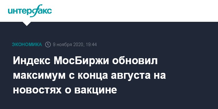 Индекс МосБиржи обновил максимум с конца августа на новостях о вакцине