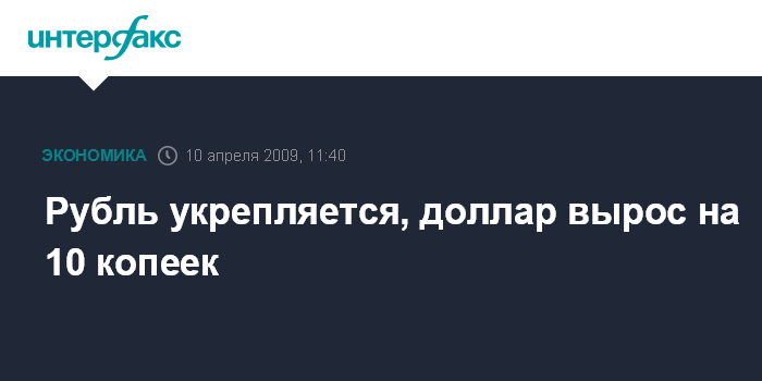 Москва. 10 апреля. INTERFAX.RU - Средневзвешенный курс доллара США к российскому рублю со сроком расчетов "завтра" на торгах единой торговой сессии ММВБ по состоянию на 11:30 мск, на основе которого происходит процесс курсообразования доллара на следующий день, повысился на 9,74 коп. по сравнению с состоянием на 11:30 мск предыдущего торгового дня и составил 33,6309 руб.