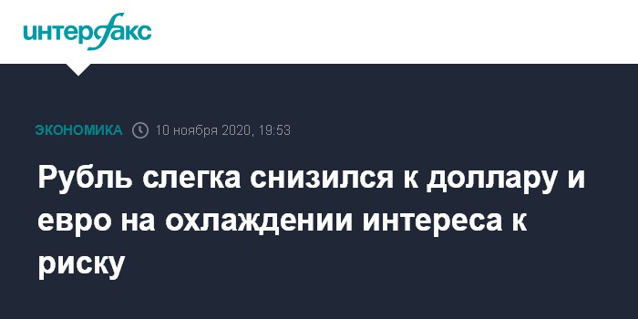 Рубль слегка снизился к доллару и евро на охлаждении интереса к риску