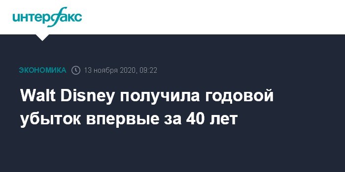 Москва. 13 ноября. INTERFAX.RU - Американская Walt Disney Co., крупнейшая в мире компания в сфере развлечений и медиа, завершила с чистым убытком четвертый квартал и весь 2020 финансовый год.