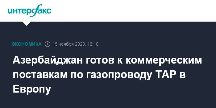 Азербайджан готов к коммерческим поставкам по газопроводу TAP в Европу