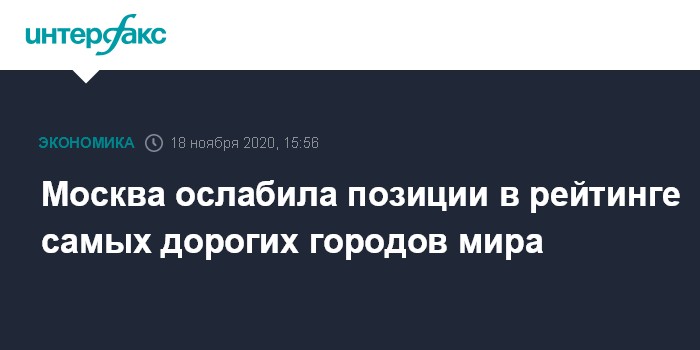 Москва опустилась в рейтинге на 20 позиций - на 106-е место.