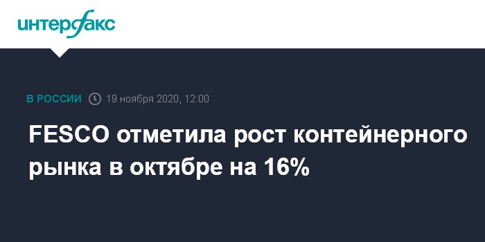 По данным FESCO, рост контейнерного рынка России по итогам января-октября 2020 года составил 10,1% по сравнению с аналогичным периодом прошлого года, до 4,747 млн TEU. Экспорт вырос на 11%, до 1,555 млн TEU, транзит - на 51%, до 589 тыс. TEU, внутренние перевозки увеличились на 12%, до 844 тыс. TEU, импорт остался практически на уровне прошлого года - 1,759 млн TEU.