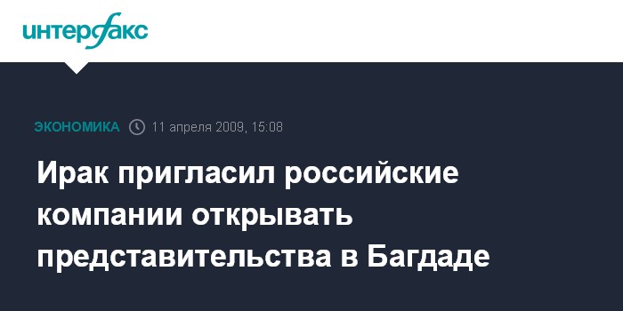 Ирак пригласил российские компании открывать представительства в Багдаде