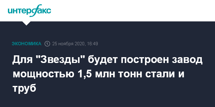 Для "Звезды" будет построен завод мощностью 1,5 млн тонн стали и труб