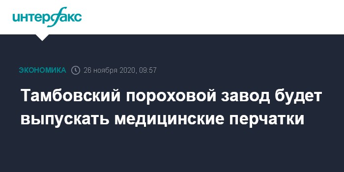 Москва. 26 ноября. INTERFAX.RU - Тамбовский пороховой завод с мая 2021 года запустит производство медицинских нитриловых перчаток, сообщила пресс-служба Минпромторга. Предприятие потратит на наладку этого производства больше 1 млрд рублей.