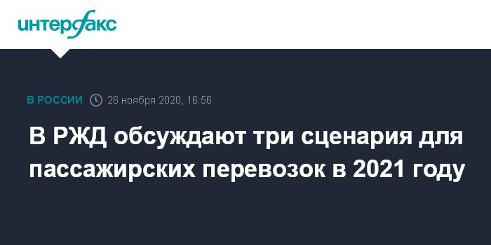 Москва. 26 ноября. INTERFAX.RU - ОАО "РЖД рассматривает три сценария развития ситуации в секторе "дальних" пассажирских ж/д перевозок на 2021 год, рассказал замгендиректора компании Дмитрий Пегов.