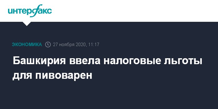 Москва. 27 ноября. INTERFAX.RU - Парламентарии Башкирии одобрили изменения в региональный закон о налоге на имущество организаций, предусматривающие освобождение производителей пива и напитков на его основе от уплаты налога на период с 1 января 2020 года по 31 декабря 2023 года, сообщает пресс-служба Госсобрания республики.
