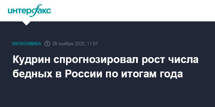 "У нас примерно на миллион (человек) прирастет бедность. К сожалению, в ближайшие годы мы не отскочим так сильно, - заявил Кудрин. - Это означает, что нам нужно наш фокус обращать на тех людей, которым нужна поддержка".