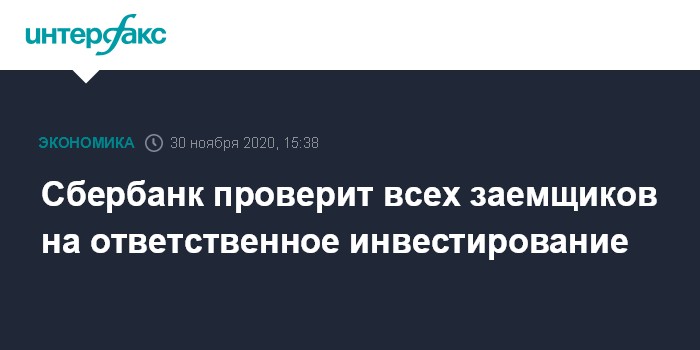 Сбербанк проверит всех заемщиков на ответственное инвестирование