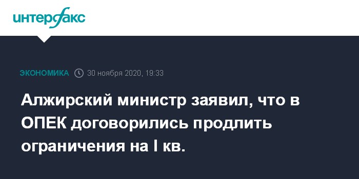 Алжирский министр заявил, что в ОПЕК договорились продлить ограничения на I кв.