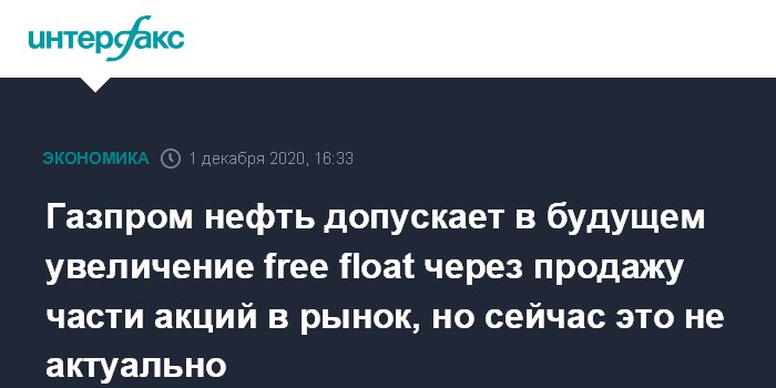 Газпром нефть допускает в будущем увеличение free float через продажу части акций в рынок, но сейчас это не актуально