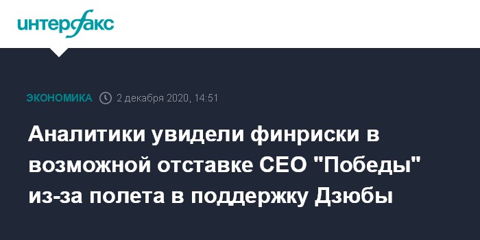 Москва. 2 декабря. INTERFAX.RU - Аналитики инвесткомпаний и банков, покрывающие акции "Аэрофлота", видят негативные последствия в возможной отставке гендиректора "Победы" Андрея Калмыкова из-за итогов расследования Росавиации полета в поддержку футболиста Артема Дзюбы.