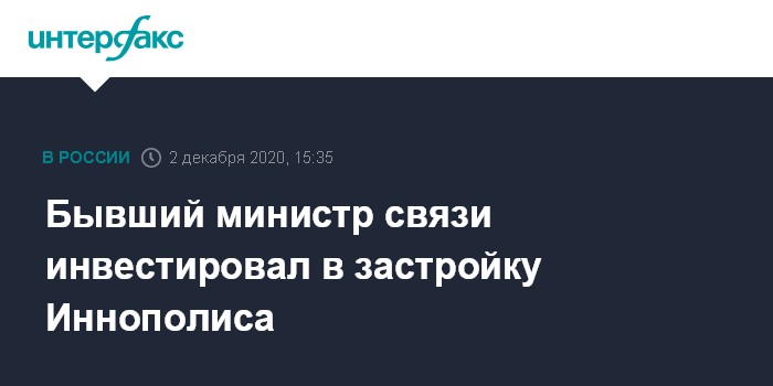 Москва. 2 декабря. INTERFAX.RU - ООО "Развитие Иннополиса" бывшего федерального министра связи Николая Никифорова получило по 33,3% в ООО "Зион" и ООО "З-Сити", специализирующихся на проектах в области недвижимости в татарстанском городе Иннополис, следует из данных системы "СПАРК-Интерфакс".