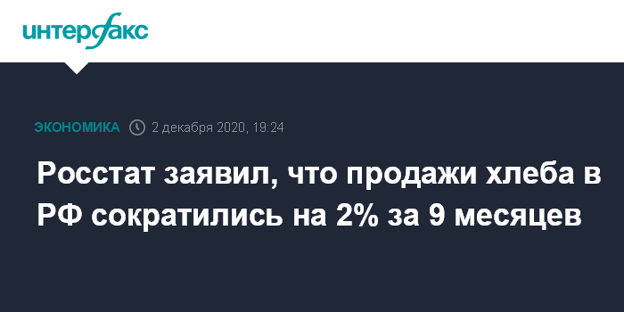 В конце ноября "Коммерсантъ" со ссылкой на прогноз аналитической компании BusinesStat сообщил, что продажи хлеба в России в натуральном выражении по итогам 2020 года могут вырасти более чем на 60 тысяч тонн, до 7,95 млн тонн. В Российском союзе пекарей (РСП) изданию уточнили, что это будет первый рост продаж хлеба за последние пять лет. По оценкам РОСПиК, за январь-сентябрь продажи категории выросли на 2,9% в годовом выражении, до 552,7 млрд рублей. Рост продаж хлеба эксперты связали со снижением доходов населения.