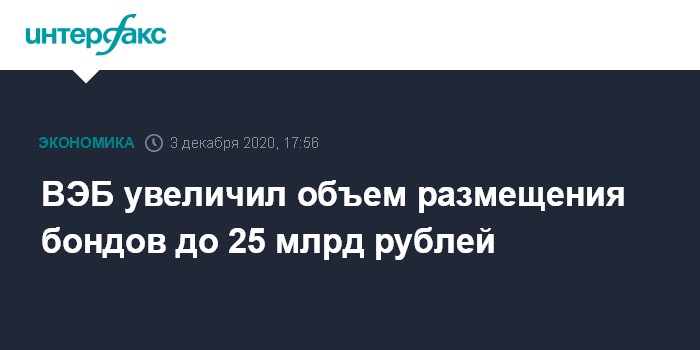 ВЭБ увеличил объем размещения бондов до 25 млрд рублей