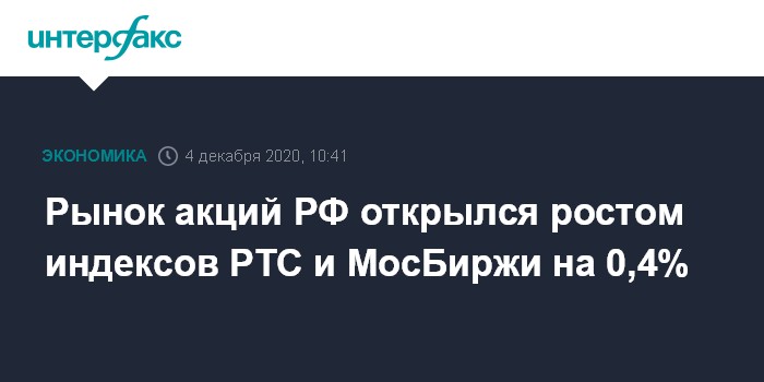 Рынок акций РФ открылся ростом индексов РТС и МосБиржи на 0,4%