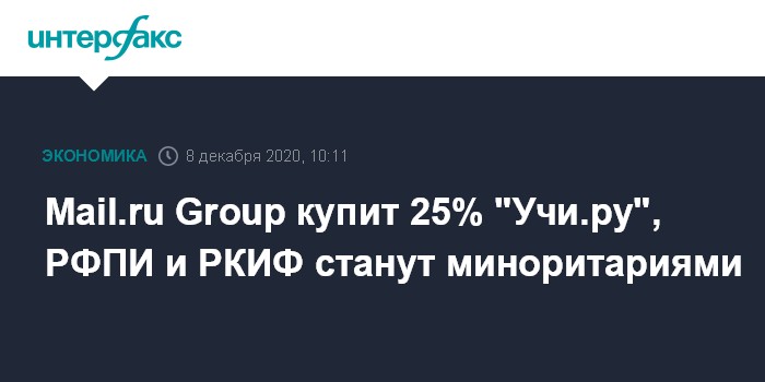 Согласно сообщению Mail.ru, интернет-компания приобретает 25% сервиса за 3,75 млрд рублей с возможностью доведения доли до контрольной через опцион. Первый опцион предполагает увеличение доли в "Учи.ру" до 49,5%, он может быть реализован в конце 2021 года. Когда Mail.ru может получить контроль в образовательном сервисе, не уточняется.