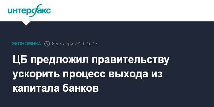 ЦБ предложил правительству ускорить процесс выхода из капитала банков