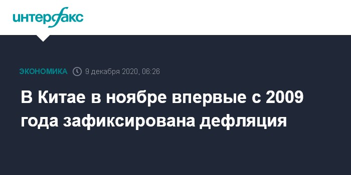 Дефляция в КНР была отмечена впервые с октября 2009 года.