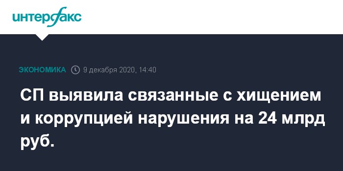 СП выявила связанные с хищением и коррупцией нарушения на 24 млрд руб.