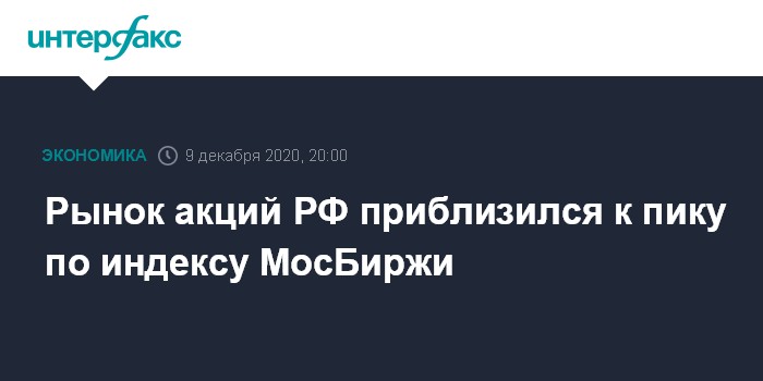 Москва. 9 декабря. INTERFAX.RU - Рынок акций РФ в среду возобновил подъем вслед за мировыми площадками на надеждах на новые экономические стимулы в США и внедрение вакцин от коронавируса; индекс МосБиржи подошел вплотную к историческому максимуму от 20 января (3226,89 пункта), но обновить его не смог из-за просевшей вечером нефти на статистике Минэнерго США о резком росте запасов сырья в стране.