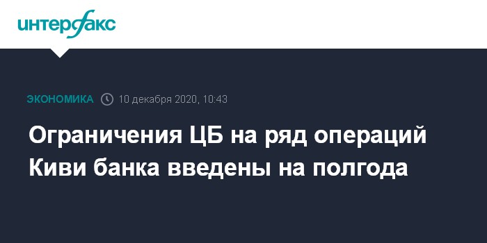 Ограничения ЦБ на ряд операций Киви банка введены на полгода