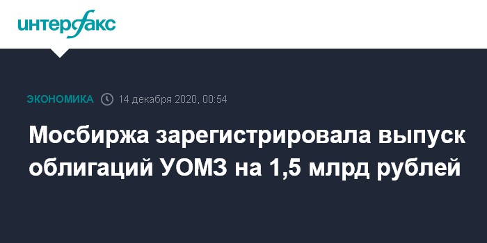Мосбиржа зарегистрировала выпуск облигаций УОМЗ на 1,5 млрд рублей
