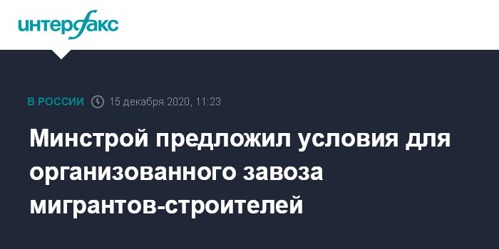 В конце октября замминистра строительства Николай Стасишин говорил о планах предложить правительству разрешить точечный ввоз трудовых мигрантов, чтобы не допустить срыва сроков строительства. К 1 декабря в иностранцах-строителях нуждались уже 50 регионов, в целом потребность отрасли оценивается в 190 000 человек. В Минстрое уточнили, что в первую очередь строителям не хватает рабочих из Узбекистана, Таджикистана и с Украины.
