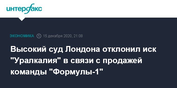 Москва. 15 декабря. INTERFAX.RU - Высокий суд Лондона отказал в удовлетворении требований "Уралкалия", заявившего о нарушениях при продаже команды Force India (ныне Racing Point) в 2018 году.