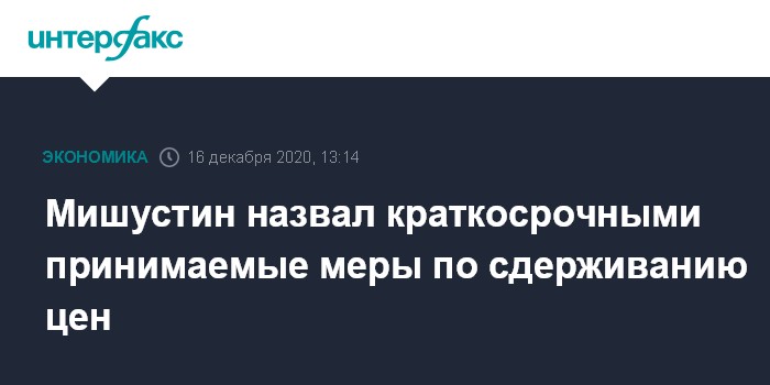 Москва. 16 декабря. INTERFAX.RU - Принимаемые правительством РФ меры по сдерживанию роста цен носят краткосрочный характер, в будущем они будут применяться только для регулирования стоимости социально значимых товаров и не должны препятствовать производству и инвестициям, заявил в среду премьер-министр Михаил Мишустин, открывая заседание кабинета министров.