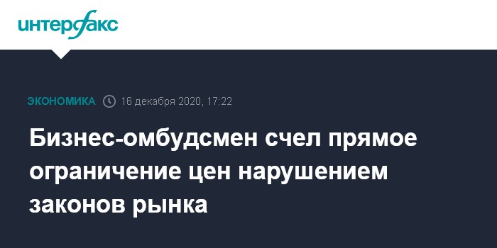 Бизнес-омбудсмен счел прямое ограничение цен нарушением законов рынка