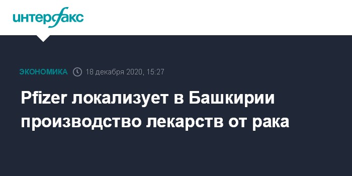 Москва. 18 декабря. INTERFAX.RU - Американская фармацевтическая компания Pfizer и АО "Фармстандарт" подписали соглашение о контрактном производстве на площадке ОАО "Фармстандарт-УфаВИТА" в Башкирии препаратов для лечения рака молочной железы, рака легких, почек и хронического миелолейкоза, сообщила пресс-служба "Фармстандарта".