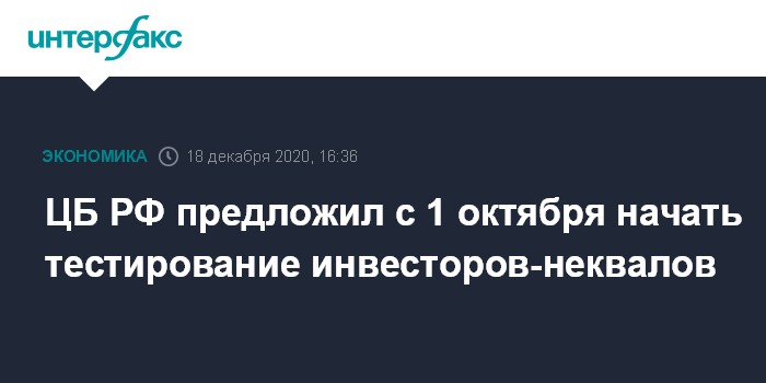 ЦБ РФ предложил с 1 октября начать тестирование инвесторов-неквалов