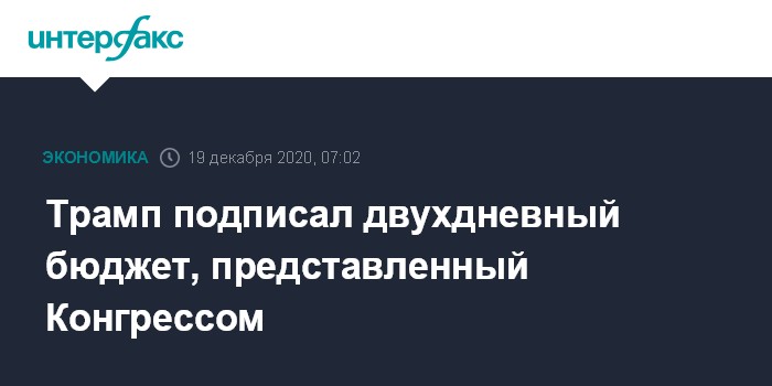 Неделю назад Трамп уже подписывал одобренный Конгрессом временный бюджет, который продлевал финансирование работы правительства США до 18 декабря. До этого временный бюджет был принят в октябре на срок до 11 декабря.