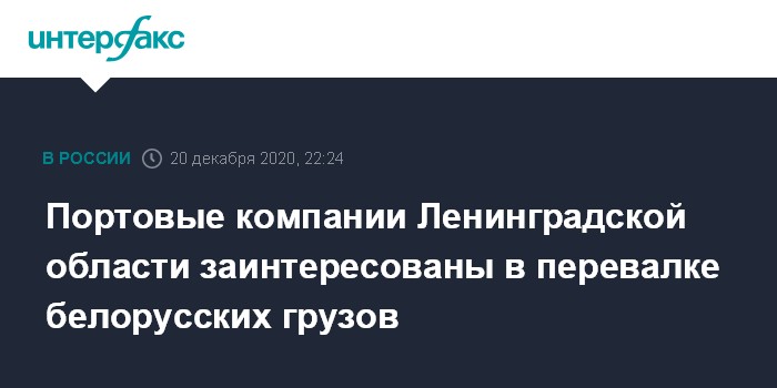 Москва. 20 декабря. INTERFAX.RU - Портовые компании Ленинградской области заинтересованы в перевалке белорусских грузов, заявил в эфире телеканала "Беларусь 1" глава региона Александр Дрозденко в воскресенье.