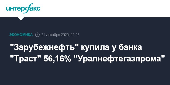 Москва. 21 декабря. INTERFAX.RU - "Зарубежнефть" закрыла сделку по приобретению 56,16% доли в компании "Уралнефтегазпром" ("УНГП") у банка "Траст".