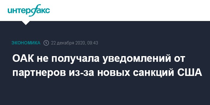 ОАК не получала уведомлений от партнеров из-за новых санкций США
