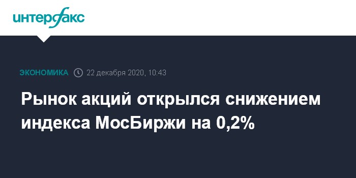 Москва. 22 декабря. INTERFAX.RU - Рынок акций РФ открылся во вторник смешанной динамикой цен blue chips на фоне негативной внешней конъюнктуры из-за новой мутации вируса COVID-19 в Великобритании, а также на фоне новых санкций США к РФ; индекс МосБиржи за минуту торгов просел на 0,2%, индекс РТС не претерпел существенных изменений, упали акции "ВСМПО-Ависма", вошедшие в санкционный список Минторга США.